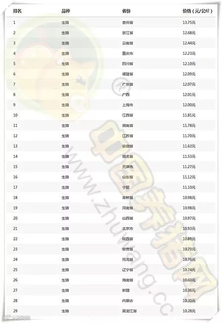 全国猪价排行
