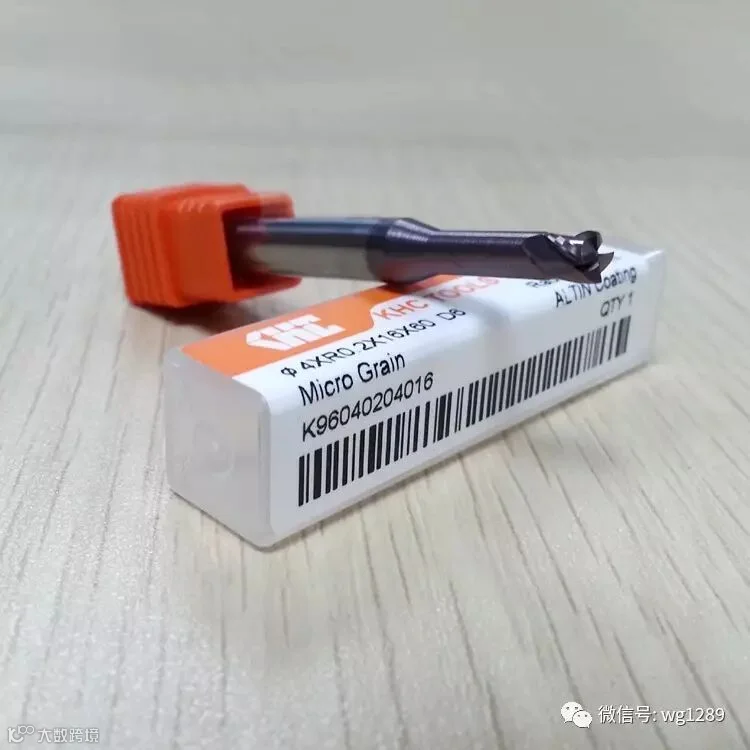 这款4刃的长颈圆鼻钨钢铣刀适合加工58度的材料,采用的是ALTIN高铝钛涂层,涂层技术是瑞士先进的PLATIT涂层技术,欧洲优质的圆棒,棒材等级相当于0.4u等级的极细超微粒。螺旋角度是35度。非常适合高速加工高效率加工。浙江林先生一年以来一直在我司定KHA435-4刃长颈平底铣刀加工黄铜,林先生说这个系列铣刀用来加工黄铜是没问题的,但有时候加工某个角落的时候平刀也不适合,必须要用圆鼻铣刀来加工,毕竟圆鼻铣刀具有角落不易崩裂的特性及切削线速度的稳定性,因为之前的KHC钨钢铣刀没有圆鼻长颈铣刀,也就一直将就着用4刃长颈平底铣刀代替,后来这款KHA435R上市后,林先生就再也不用将就了。