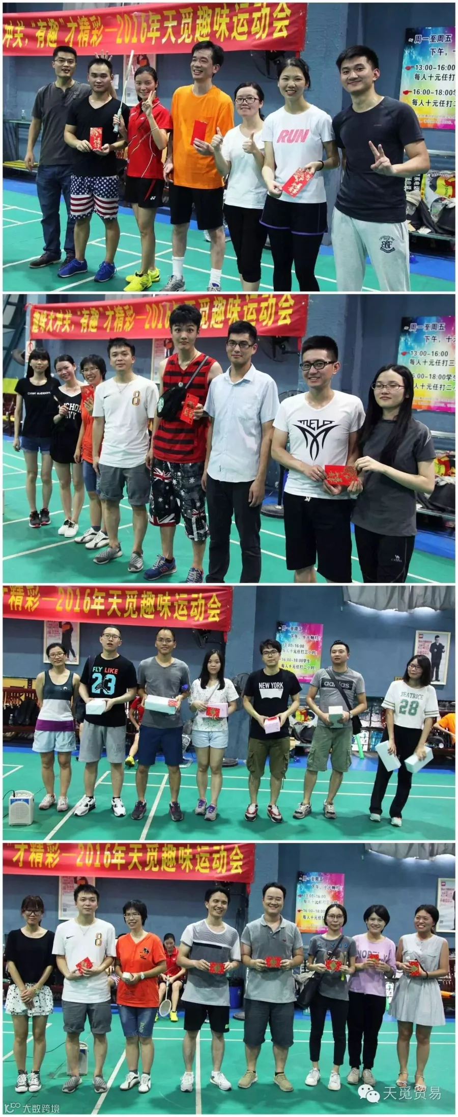经过前期紧张的筹备,2016年6月24日,天觅趣味运动会隆重拉开帷幕。本次趣味运动会融合了趣味性和竞技性,共设置四个项目:羽毛球混合双打、三人四足、珠行万里、投篮比赛,既考验参赛人员的运动能力,也要求各成员之间的团队协作能力。