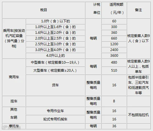 广东省车辆车船税适用税额表