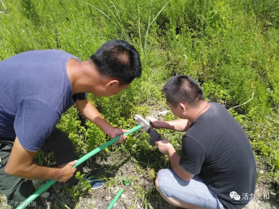 8月21日保安张增辉清理施工路线中的杂草为施工作准备,22日刘峰等于上午9点半到达工地,先拉一条150多米的电源供施工使用,通过5个多小时的努力,于下午16点半完成超过200米的接管工作,将自来水接到移动房使用区域。