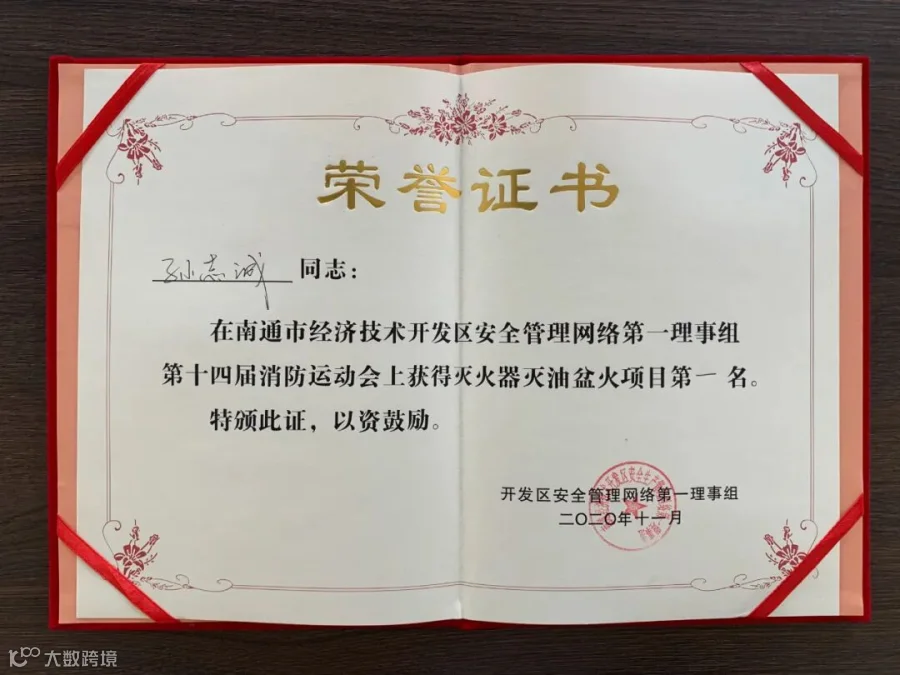 孙志诚在灭火器灭油盆火项目中荣获第一名