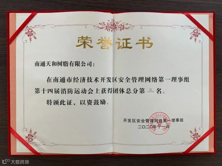 南通天和树脂有限公司荣获团体总分第三名