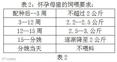 怀孕和哺乳是受激素调节的,在怀孕初期,高水平孕酮使最多数量的胚胎顺利着床。因此在配种后立即限制母猪的采食量,喂怀孕料,怀孕最初3周内,母猪的日采食量不能超过2公斤,怀孕3周后可以慢慢提高采食量,在怀孕84天后可达到3.0公斤/天.头,喂专用的攻胎料,这样可提高仔猪的初生重。缩短产程,减少死胎比例,同时提高仔猪的活力和母猪的泌乳性能。注意 母猪怀孕35-84天阶段是生长、机体储备、体况调整恢复时期,对过肥或过瘦的母猪适当地进行减料或加料,使怀孕母猪在分娩前达到较好体况。