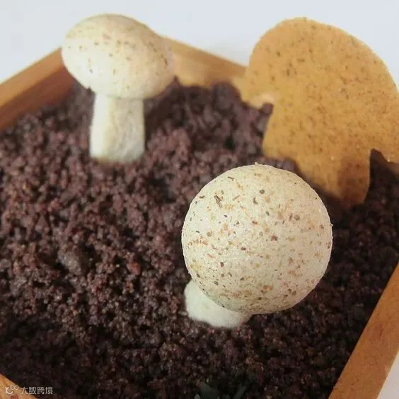 蘑菇盆栽蛋糕!蘑菇是软糯的马林,巧克力味的土壤,加上土壤底下的蛋糕。
