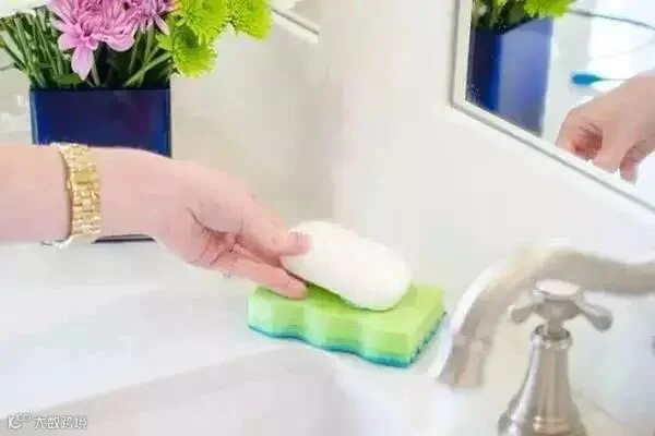 每次用肥皂盒,底部会囤积很多残余的肥皂水,不定期清洗便会发霉。用海绵替代,省心又省钱,快速吸收肥皂上的泡沫,直接蘸水即可清洁物品。
