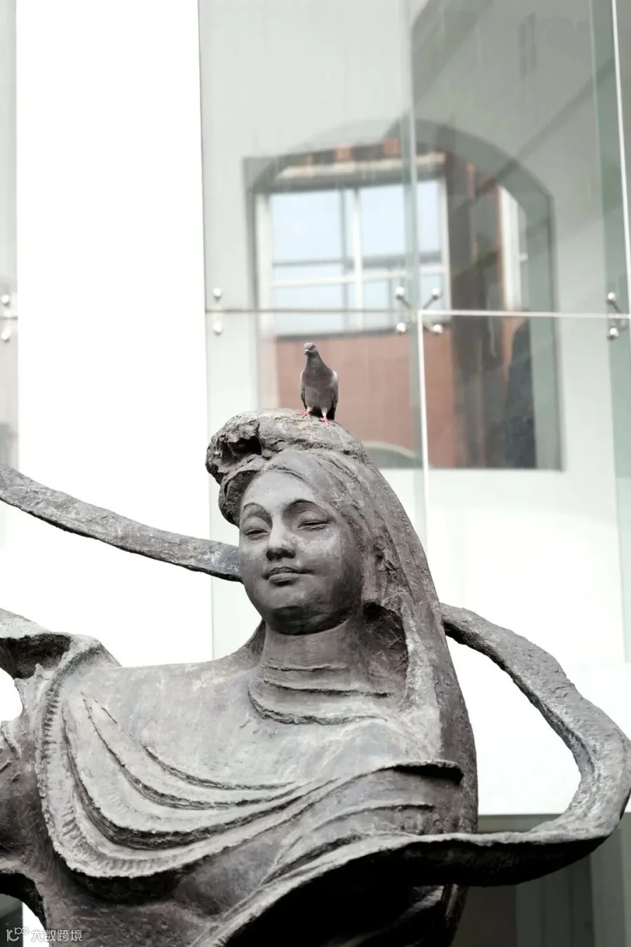 鸽子停在中庭雕像上休息