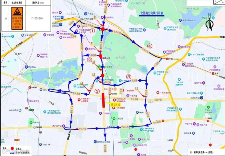 解放北路北往南绕行线路