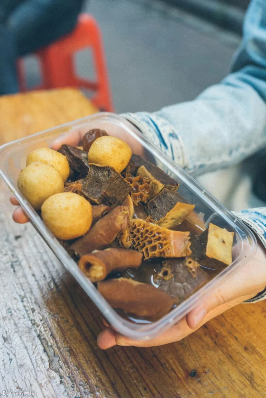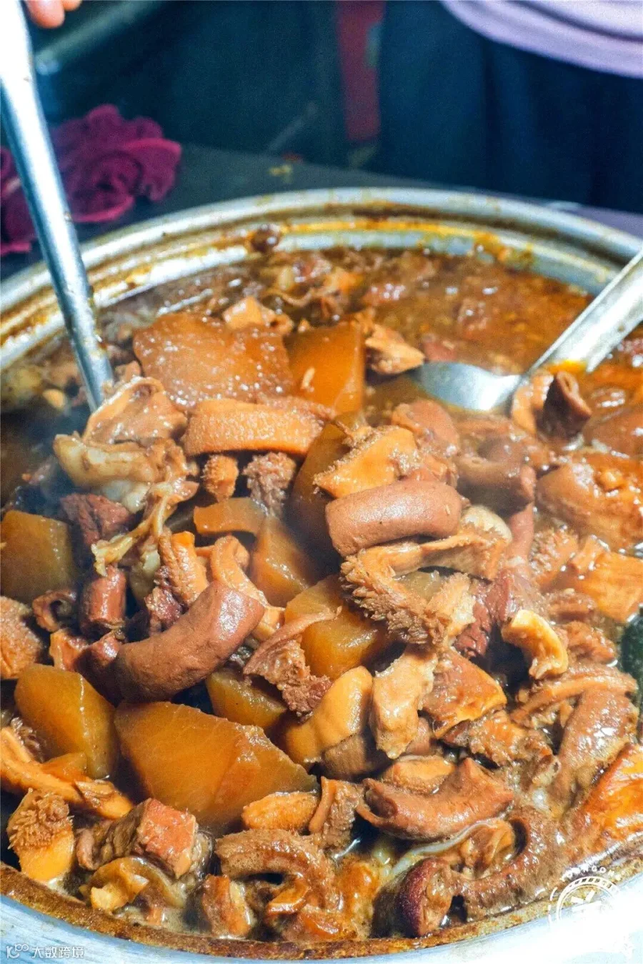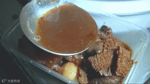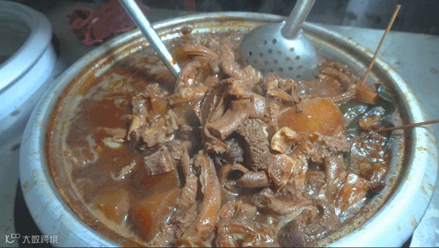 看看这充满胶原蛋白的牛筋,泡在汤汁里滑溜溜的夹都夹不上来,阿姨还一直热情地问我们,要不要多给你们几块。