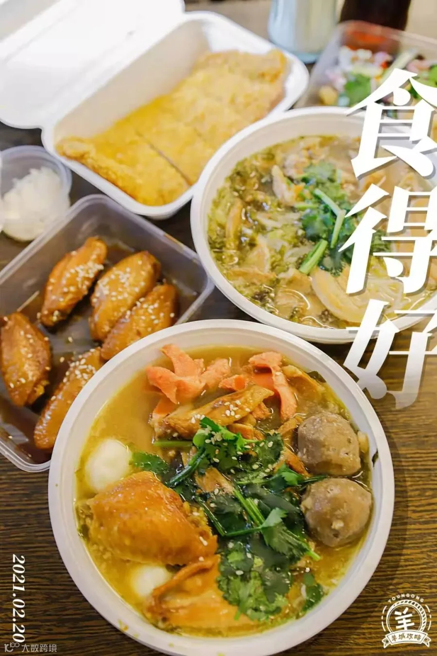 汤底的话个人觉得中规中矩!细米粉吃起来很入味,加上鸡翅、肉丸、香肠...等等配菜,连小编一个人都吃不完一碗!