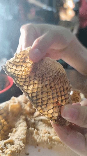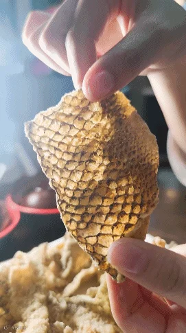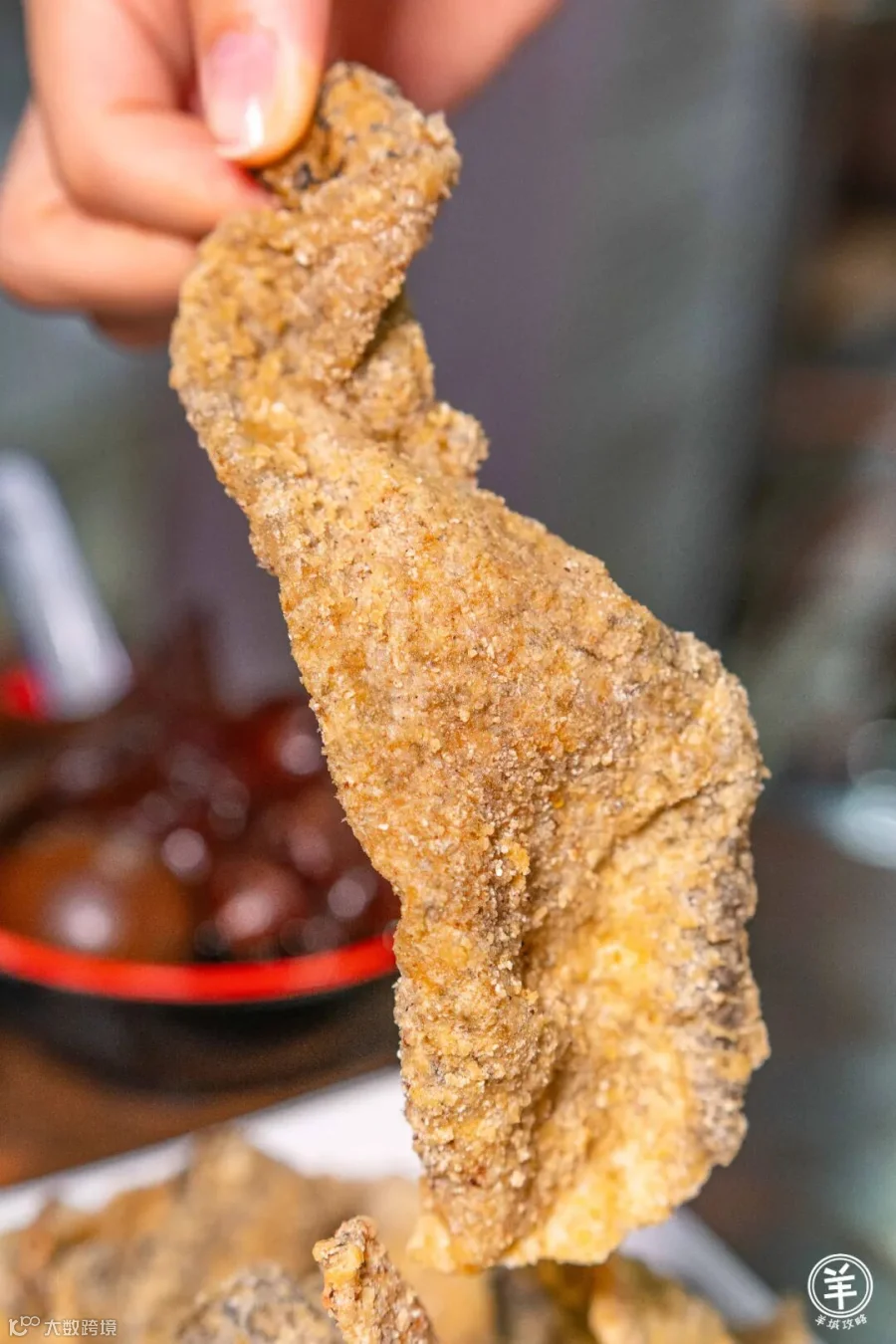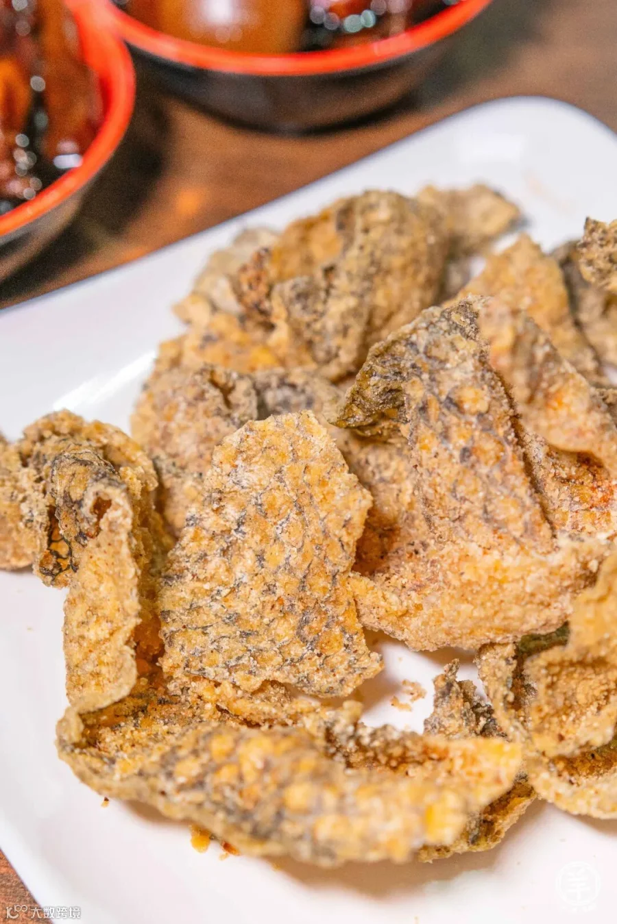 炸鱼皮是店里单价最高的一道菜,吃进嘴里香脆可口,而且分量也不少,每片鱼皮都很大块。