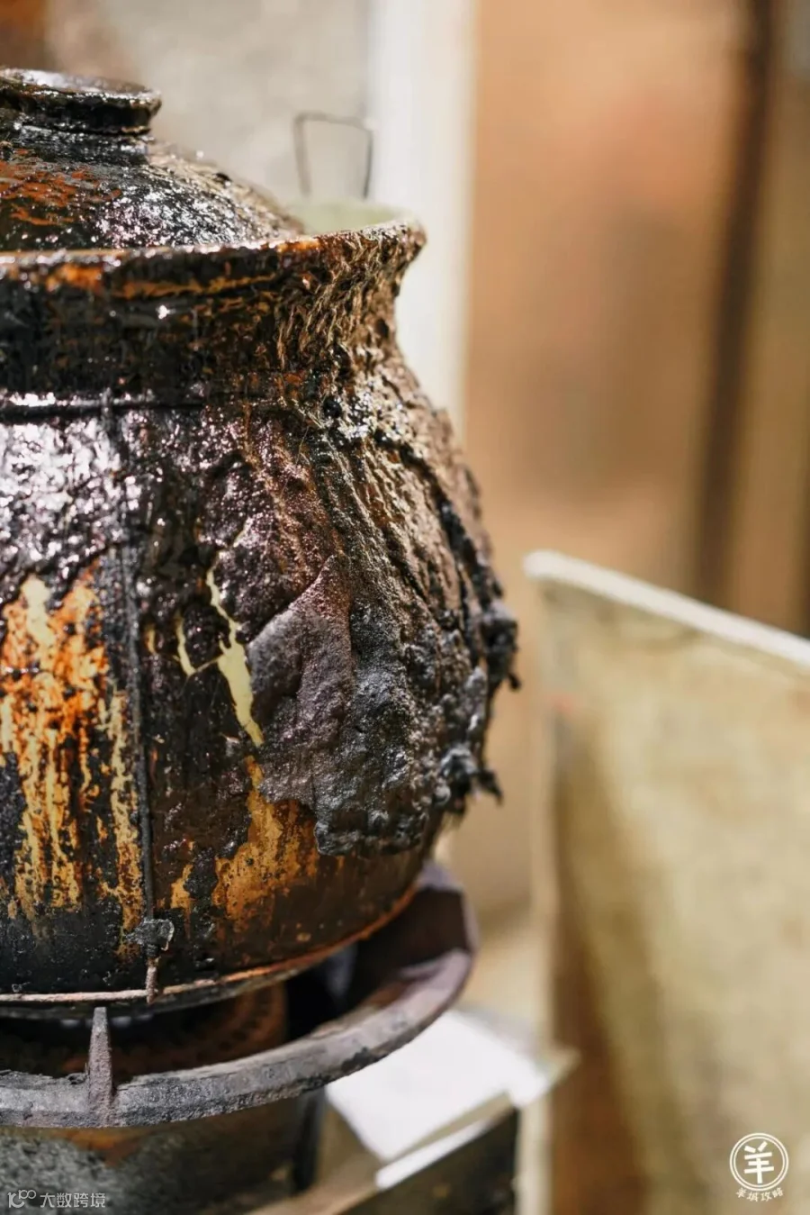 瓦煲外壁覆盖的这些“黑漆”,店员说这都是甜醋滚开后溢出流下的糖浆。因充满了胶质和黏性,日积月累就凝结为厚厚的一层、两层、三层……