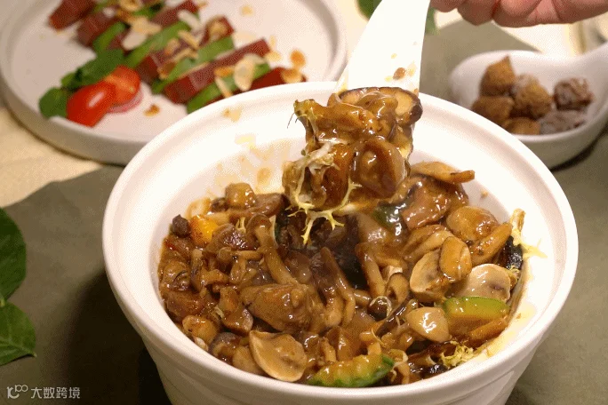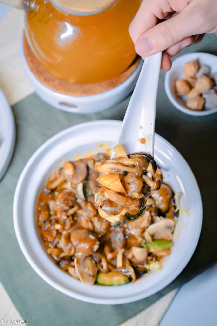 里面有素香菇丸、香菇、金针菇、豆腐等