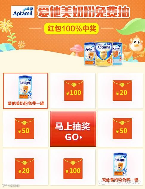 免费抽奖送爱他美奶粉一罐,100%中奖,我会和你开玩笑吗?