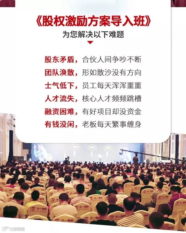 【对内】:您将学会一套如何在企业导入一套股权激励机制,吸引和留住管理人才、营销人才、技术人才、让员工发自内心的忠诚于公司,和公司形成利益、事业的共同体,提高员工积极性?