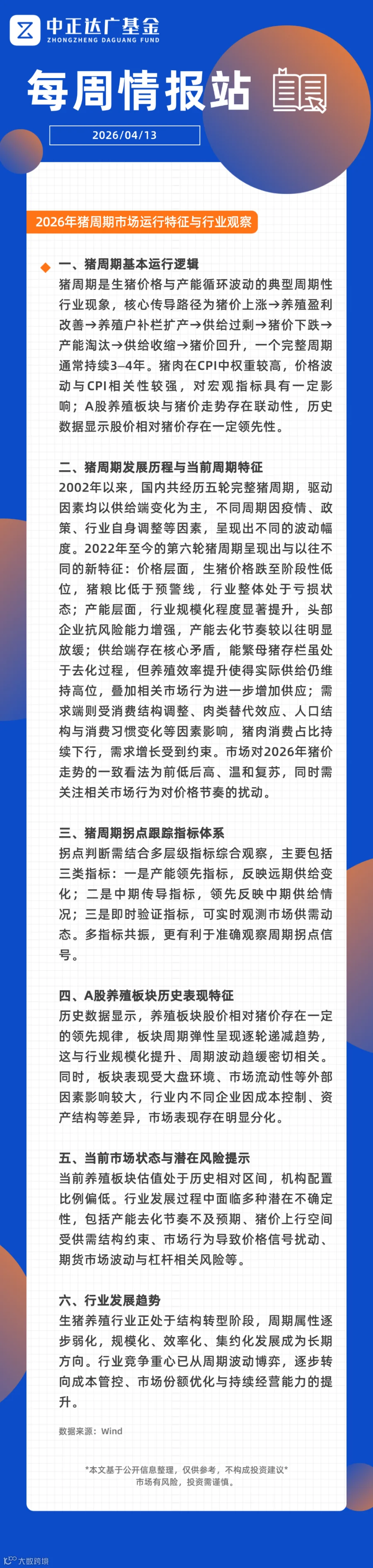 【每周情报站】2026年猪周期市场运行特征与行业观察 中正达广基金