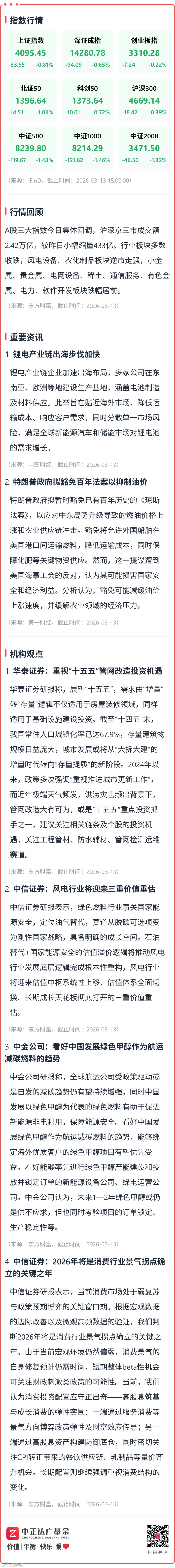 【收盘点评】锂电产业链出海步伐加快;特朗普政府拟豁免百年法案以抑制油价 中正达广基金