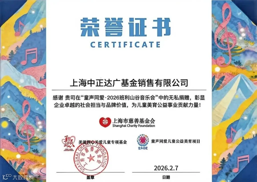 本次 “童声同爱” 班利山谷音乐会的成功举办,离不开社会各界爱心力量的共同支持。今年也是中正达广基金与该公益项目携手同行的第三年。作为爱心同行伙伴,我们始终将践行社会责任放在心上,持续关注乡村儿童美育成长,用实际行动助力沪滇两地美育资源互通共享。未来,中正达广基金将继续秉持初心,深耕公益陪伴,以真诚而持久的善意守护乡村孩子的音乐梦想,助力教育公平,点亮更多山野微光。