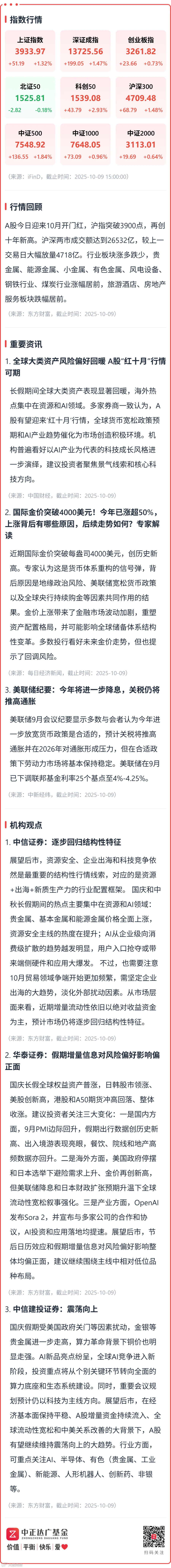 导读:A股今日迎来10月开门红,沪指突破3900点,再创十年新高。