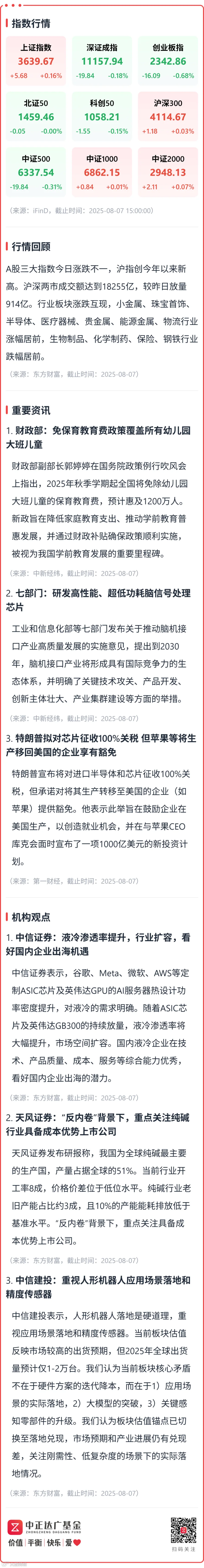 【收盘点评】免费学前教育政策推行;特朗普拟对芯片征收100%关税 中正达广基金