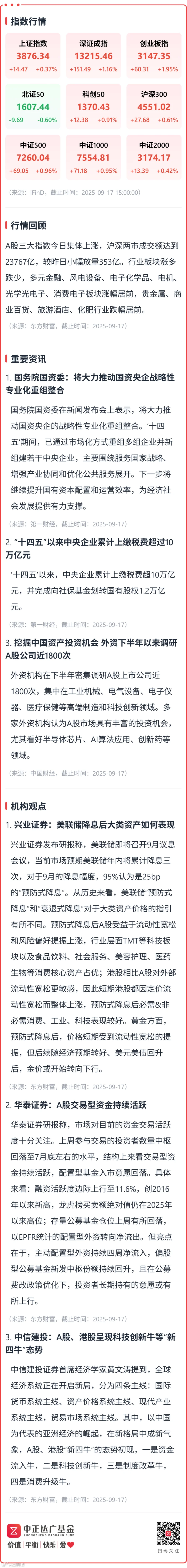 【收盘点评】“十四五”以来中央企业累计上缴税费超过10万亿元;外资下半年以来调研A股公司近1800次 中正达广基金