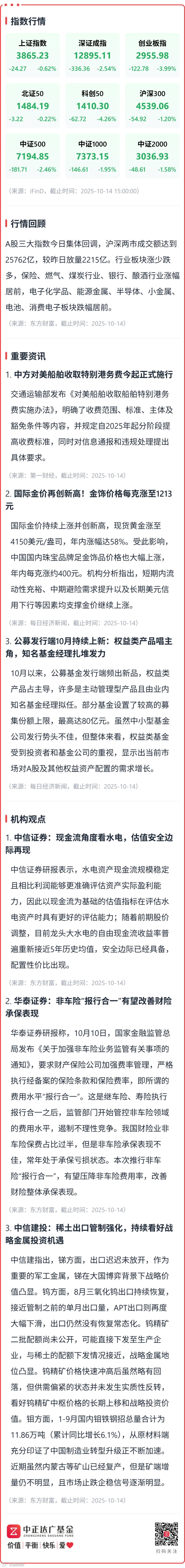 【收盘点评】中方对美船舶收取特别港务费今起正式施行;国际金价再创新高 中正达广基金