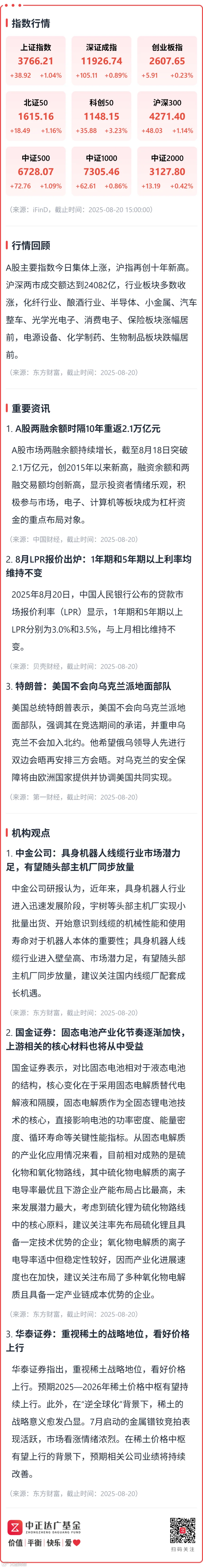 【收盘点评】A股两融余额时隔10年重返2.1万亿元;8月LPR报价出炉 中正达广基金