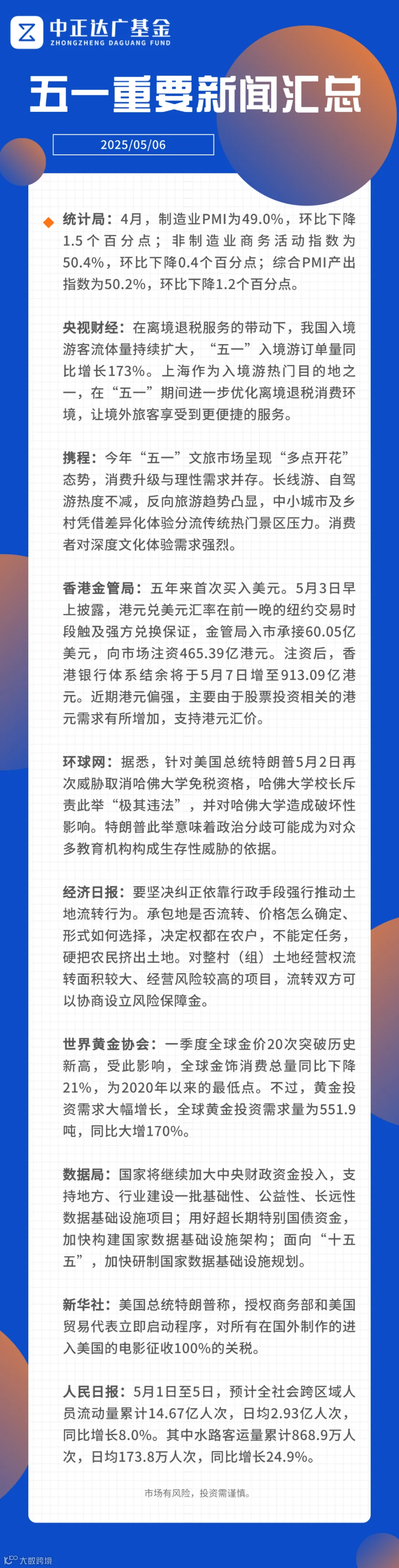 【每周情报站】五一重要新闻汇总 中正达广基金