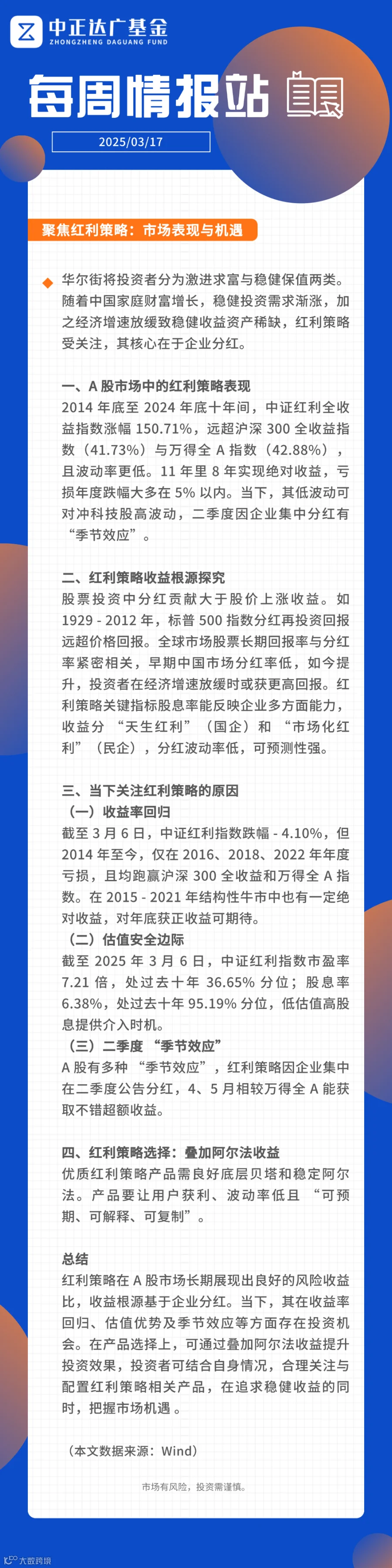 【每周情报站】聚焦红利策略:市场表现与机遇 中正达广基金
