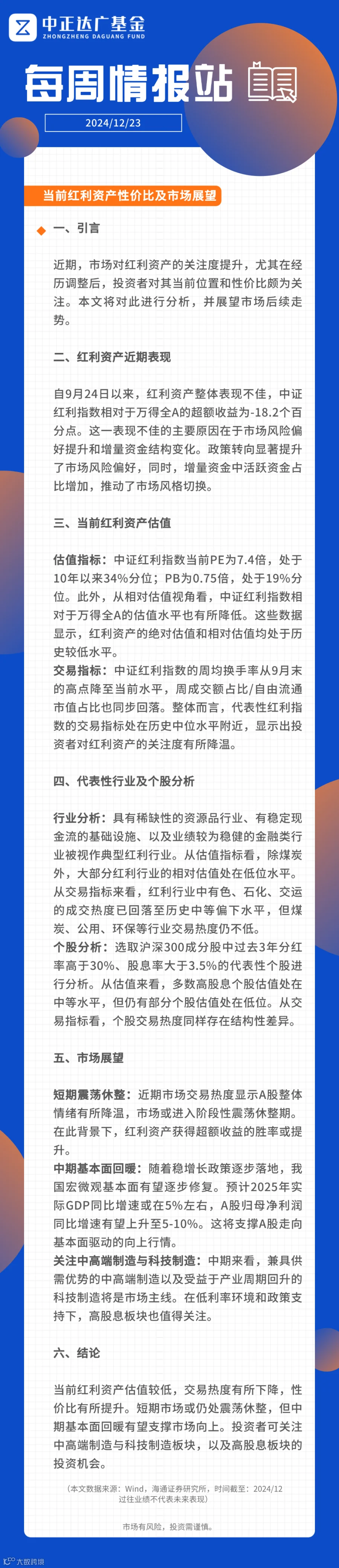 【每周情报站】当前红利资产性价比及市场展望 中正达广基金