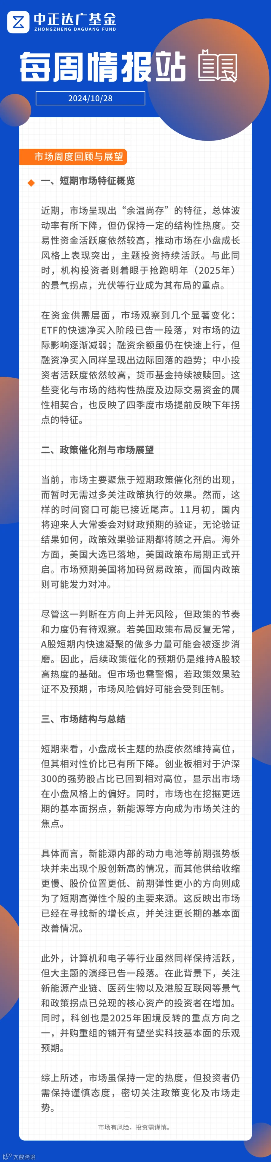 【每周情报站】市场周度回顾与展望 中正达广基金