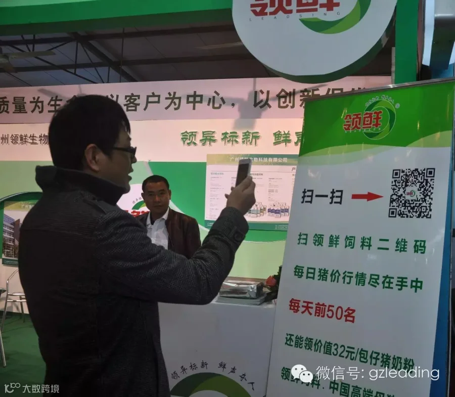 领鲜集团在这次展会上举办了微信扫一扫免费领取仔猪奶粉活动,吸引了众多养猪人士踊跃参与。