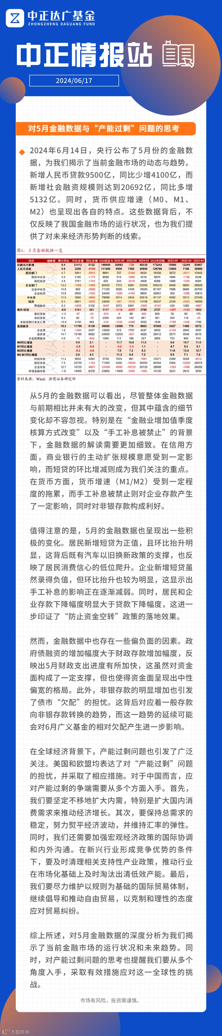 【中正情报站】对5月金融数据与“产能过剩”问题的思考 中正达广基金
