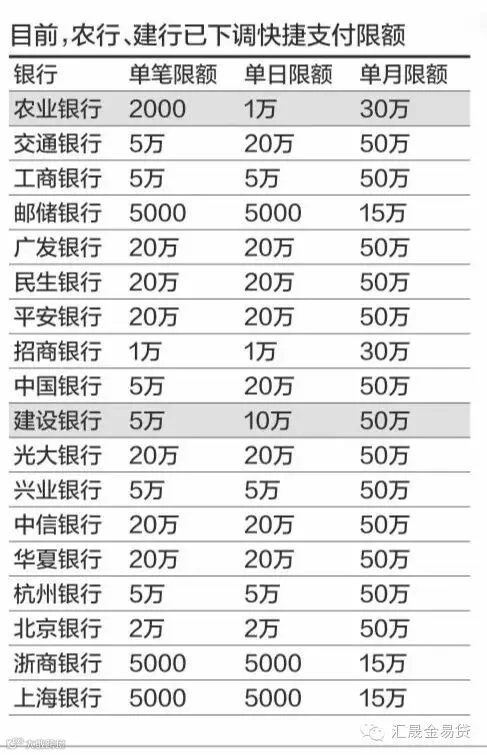 南都记者从一家P2P公司获得各家银行最新快捷通道转账限制明细看到,农行此前单笔上线为5万元,但现在已经降至2000元,而单日和单月限额则由此前的10万、50万下调至1万和30万,下调幅度非常大。建行的情况类似,单笔限额从20万下调至5万,单日限额从20万下调至10万元。 昨天,一家P 2P平台负责人对南都记者表示,该下调对于具有A P P和P C端双渠道的平台影响不大,但对于仅有A PP端的平台来说,影响非常大。