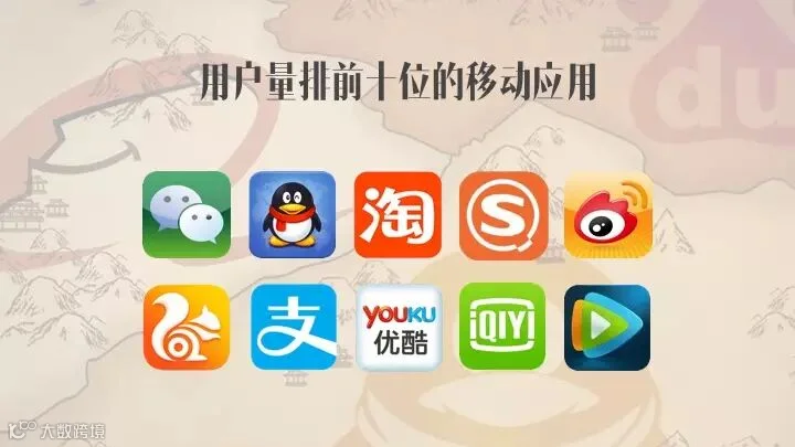 中国人现在用的最多的10个移动客户端里面有8个,要么是属于阿里系的,要么是属于腾讯系的,而如果在三年前,他们两家加在一起的数据应该不超过4个。