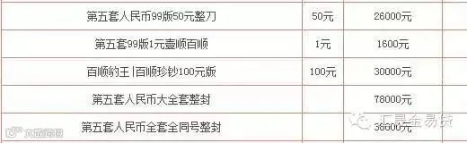 第五套人民币我们太熟悉不过了。包括1元、5元、10元、20元、50元、100元几种面值。这种的收藏价值在哪里呢? 整套的有收藏价值,比如第五套人民币大全套整封,价值78000元。百顺豹王|百顺珍钞100元版,价值3000元。
