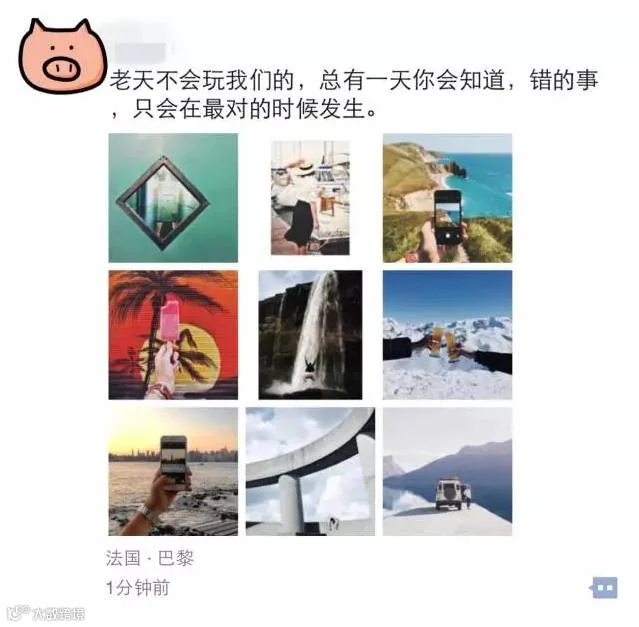 旅行前三天已经连续发了10几条九宫格了,还想发,但又不希望朋友看腻风景,因此加一些鸡汤式的文案调和一下,能呼应自己最近的工作、生活境遇,才不显得那么刻意。