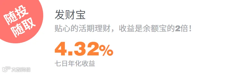 例如发财树理财的发财宝,零钱投资,1000元起投,七日年化收益4.32%,随投随取,让零钱活起来。