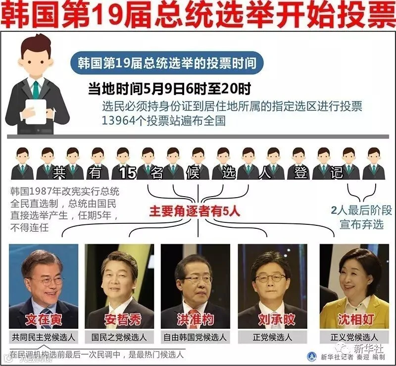 韩国当地时间9号早上6点,第19届总统大选投票正式开始了。原本这届选举预计是在今年的12月20日举行,谁知朴槿惠阿姨被弹劾罢免了,根据韩国宪法规定,要在总统被弹劾的六十天内举行总统选举,所以就给提前到了5月9日。