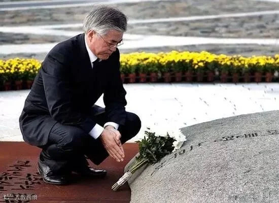 2009年5月23日,卢武铉因涉嫌受贿遭调查,随后跳崖身亡。文在寅带着巨大悲痛,在国民面前宣布了卢武铉的死讯。