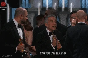 人家剧组都上台庆祝啦,在感谢好莱坞梦想啦,