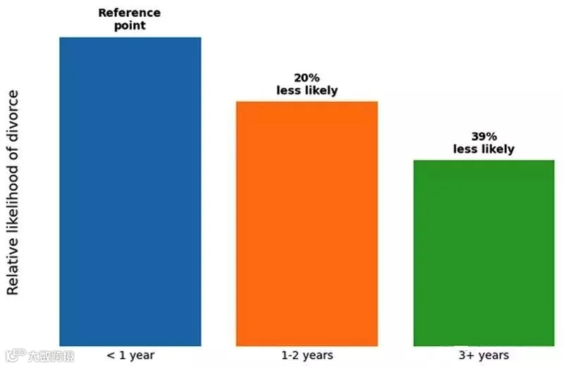 研究表明,交往不超过一年的夫妇的离婚率比那些在结婚前交往3年以上的夫妇离婚率高出39%,所以说闪婚可能离得快!