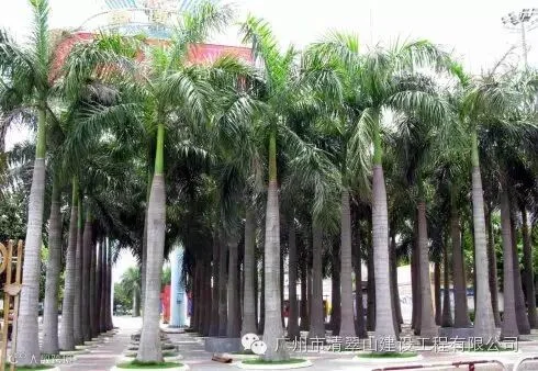 主干浅褐色,生长速度缓慢,广泛应用于南方城镇道路绿化,作行道树、园景树等。其实不能用作行道树,因不能遮阴。 单干,高15~20米 高耸挺直,平面平滑,叶羽状全裂,小叶披针形。核果阔卵形。幼株干基肥大,随成长逐渐转为上部粗大。干的环纹圈圈明显,干面灰白平滑,径达50~80厘米。花白色,雌雄同株,穗状花序,着生于叶鞘的下部,最初包被于一圆筒状的佛焰苞内,花开时则脱佛焰苞而出,小花梗有许多分支,状如扫帚。