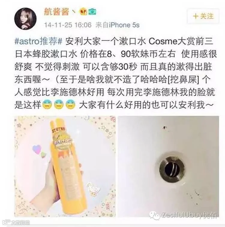 这款正是在日本本土和国内海淘都是大热的单品,COSME大赏第二位!Propolinse比那氏蜂胶复合漱口水它是一瓶神奇的漱口水!强化洗净的成分,软化牙齿里面隐藏的污垢,让其浮出方便轻易的冲洗掉,清除口内污垢同时吸附异味清除产生异味的成分。