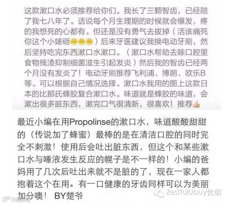 Propolinse比那氏蜂胶复合漱口水采用特殊蜂胶配方,强化清洁成分,软化口腔隐藏污垢,清除口腔污垢同时吸附异味,对细菌、真菌、致病菌、霉菌等均有抑制作用。更加找人稀罕的地方是,这款漱口水没有以往普通在卖的漱口水的不良使用感,非常温和不辣口但效果超强!
