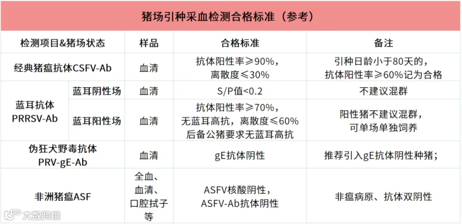 ②根据自己猪场的猪群健康状况等级确定引种猪群健康等级,特别是非瘟、蓝耳和猪伪狂犬病。