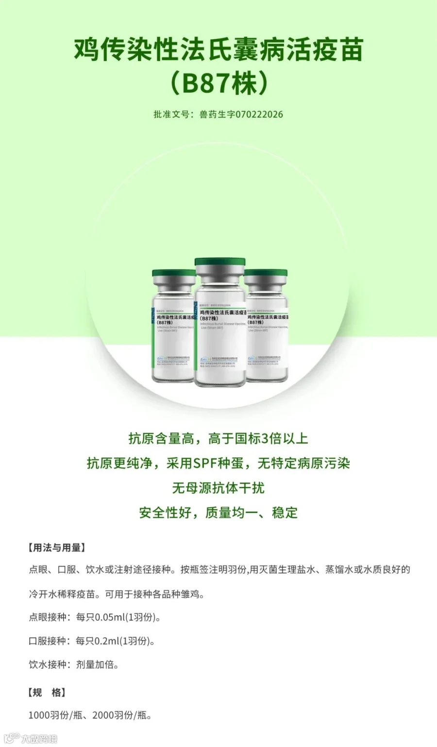 产品涵盖猪、禽、牛羊、宠物四类动物疫苗,42个产品文号,80多个规格产品;2015年10月投入使用的动物实验中心,是国内首批、东北地区规模最大的智能动物检测平台。2017年新建细胞悬浮培养和基因工程疫苗新生产车间,6条生产线已全部通过GMP验收。