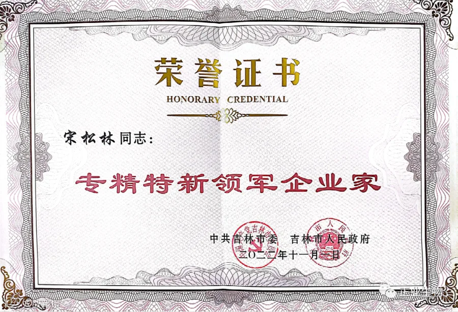 2022年8月,公司凭借着“技术创新”和“经营创新”为双引擎的发展新思路、“以市场为导向,以科技为手段,以质量求生存,以创新促发展”的企业经营方针,以及近几年在科技创新、主营收入等方面的优异成绩,被认定为“2022吉林省级专精特新中小企业”。