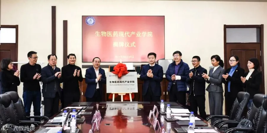 谢景武校长、宋松林总经理共同为“生物医药现代产业学院”揭牌。