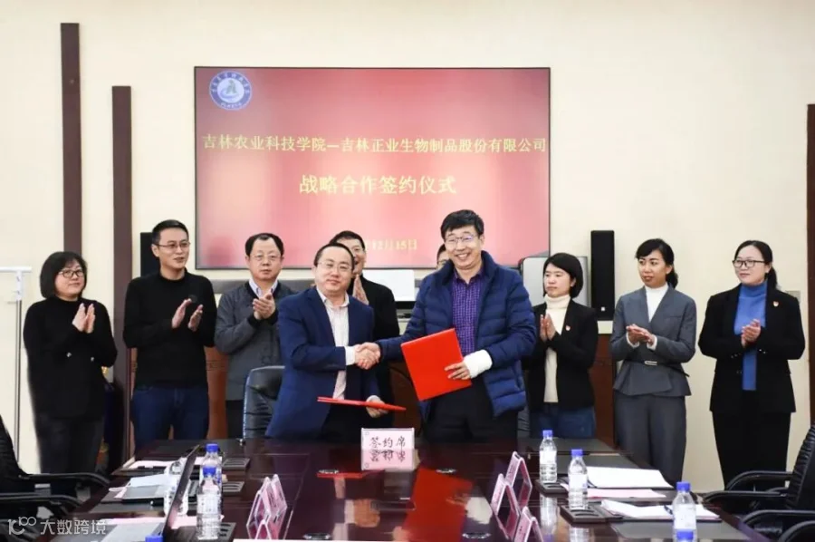 12月15日上午,吉林正业生物制品股份有限公司与吉林农业科技学院战略合作框架协议签约仪式在吉林农业科技学院成功举行。出席本次签约仪式的有吉林农业科技学院校长谢景武、副校长李国江、校科技处处长尹柏双、校教务处处长赵悦,生物与制药工程学院院长徐丽萍、副院长李秀花、副院长叶飞,动物科技学院院长赵翠青、副院长沙万里;正业生物公司总经理宋松林、常务副总经理董雅文、副总经理何玉友、副总经理廉维、副总经理程玉红、副总经理兼董事会秘书刘仲尧、总经理助理吴艳丽、生产中心总监王富猛、研发中心主任王国辉等人。